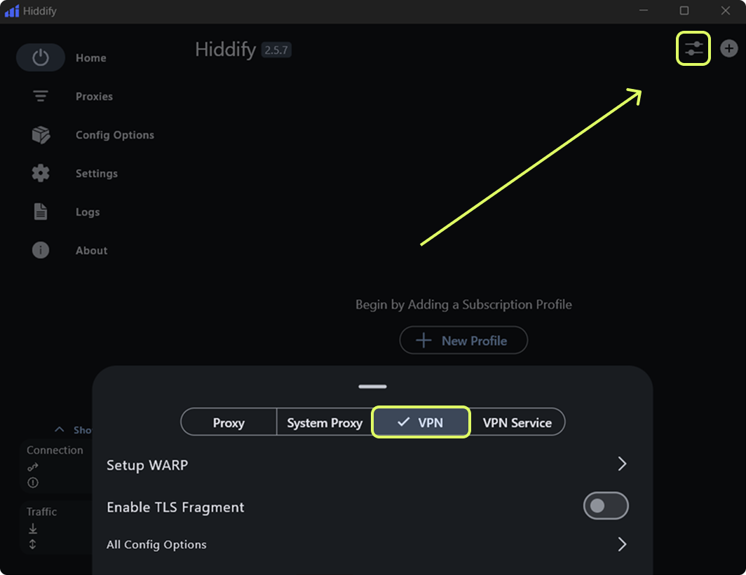 - [ПК]: Убедитесь, что у вас включен режим "TUN":